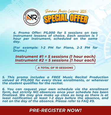 Yes, we offer instrument rentals for most of the instruments we teach. P100 per hr of session. Students are responsible to take care of the instrument. If it gets broken, it's considered as sold. That's why we encourage students to bring their own instrument.